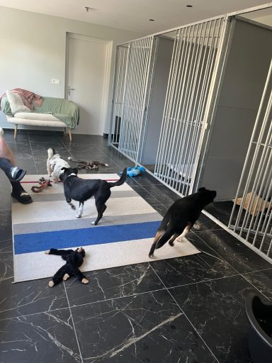 Uw hond kan de gehele dag vrij rondlopen en zal dus niet alleen in de kennel zitten. We hebben een mooie speelweide waar ze bij mooi weer ook heerlijk kunnen spelen en genieten van het mooie weer.